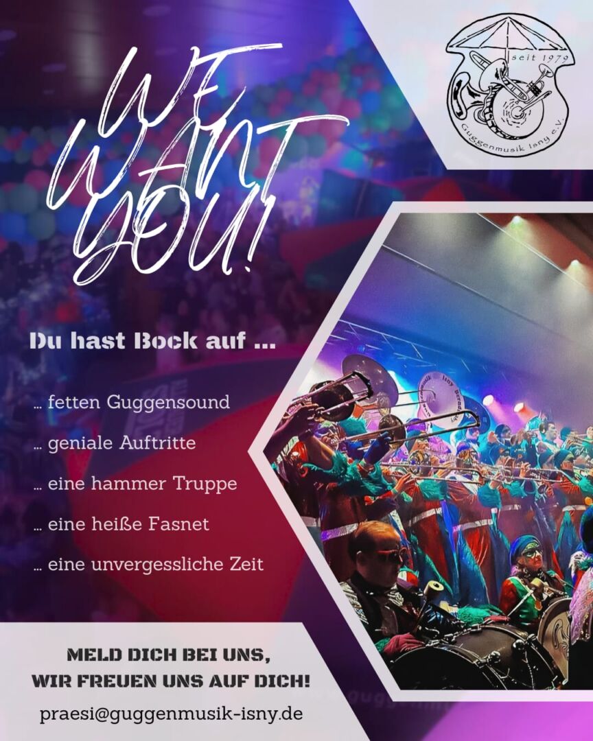 Ein herzliches Willkommen bei uns, der Guggenmusik Isny. Wir sind eine bunt gemischte Truppe aus Blechblas- und Schlagwerkinstrumenten. Uns gibt es bereits seit 1979 und seitdem ist der Guggensound für uns so wichtig wie das Mundstück für das Blechblasinstrument.